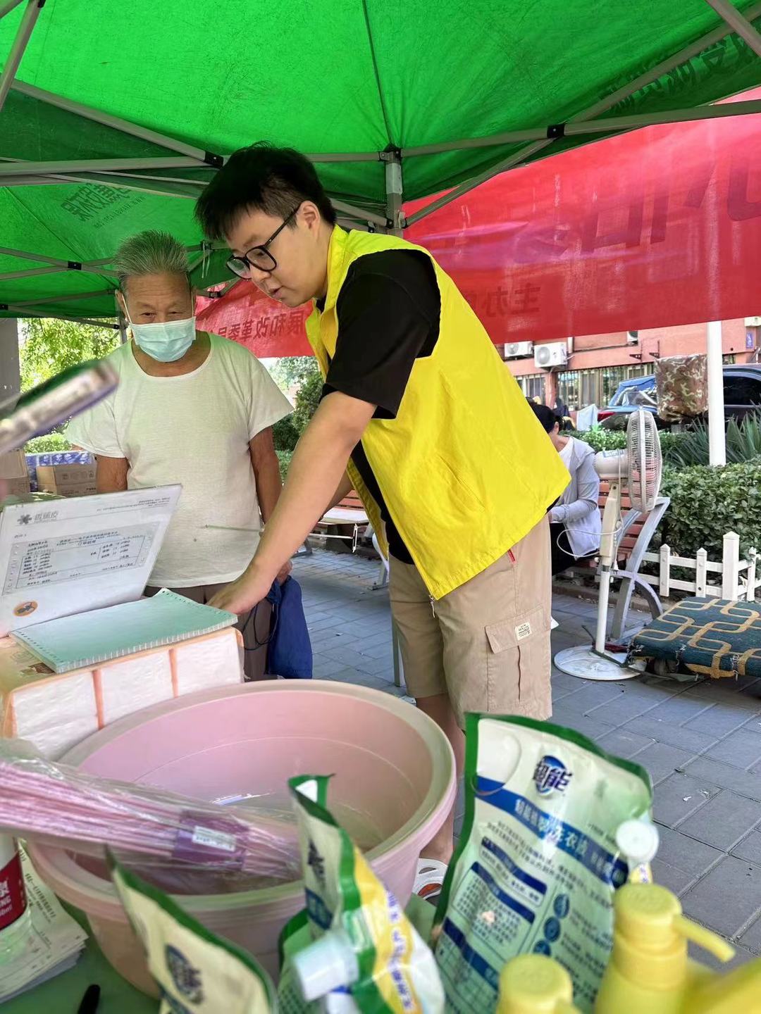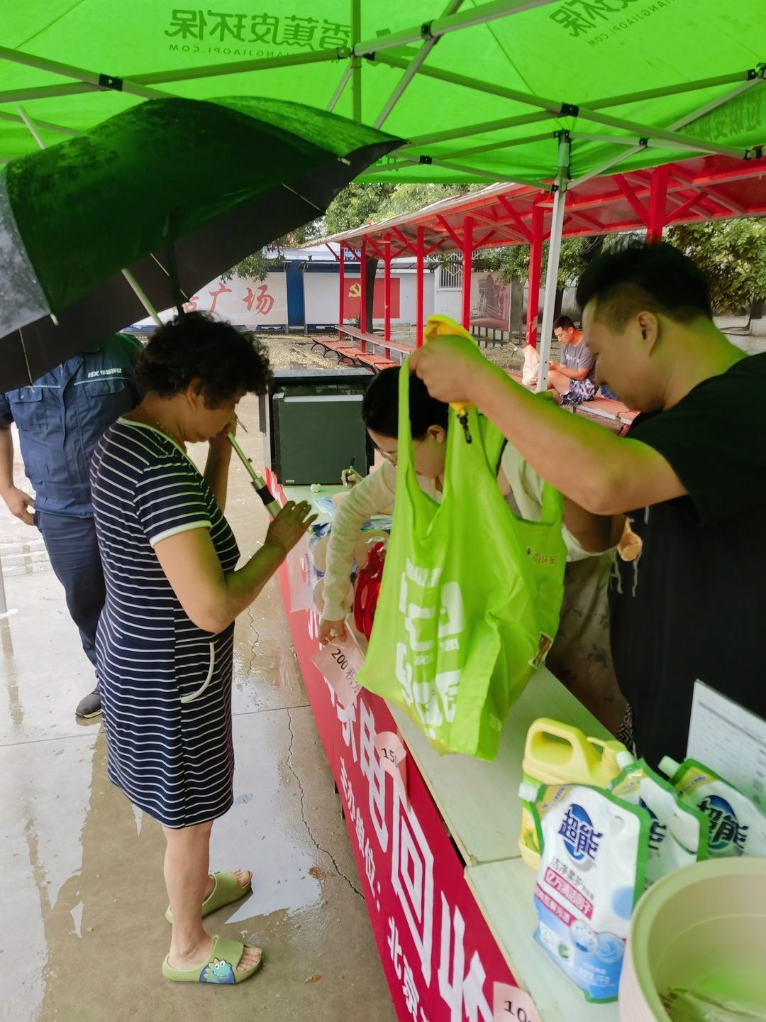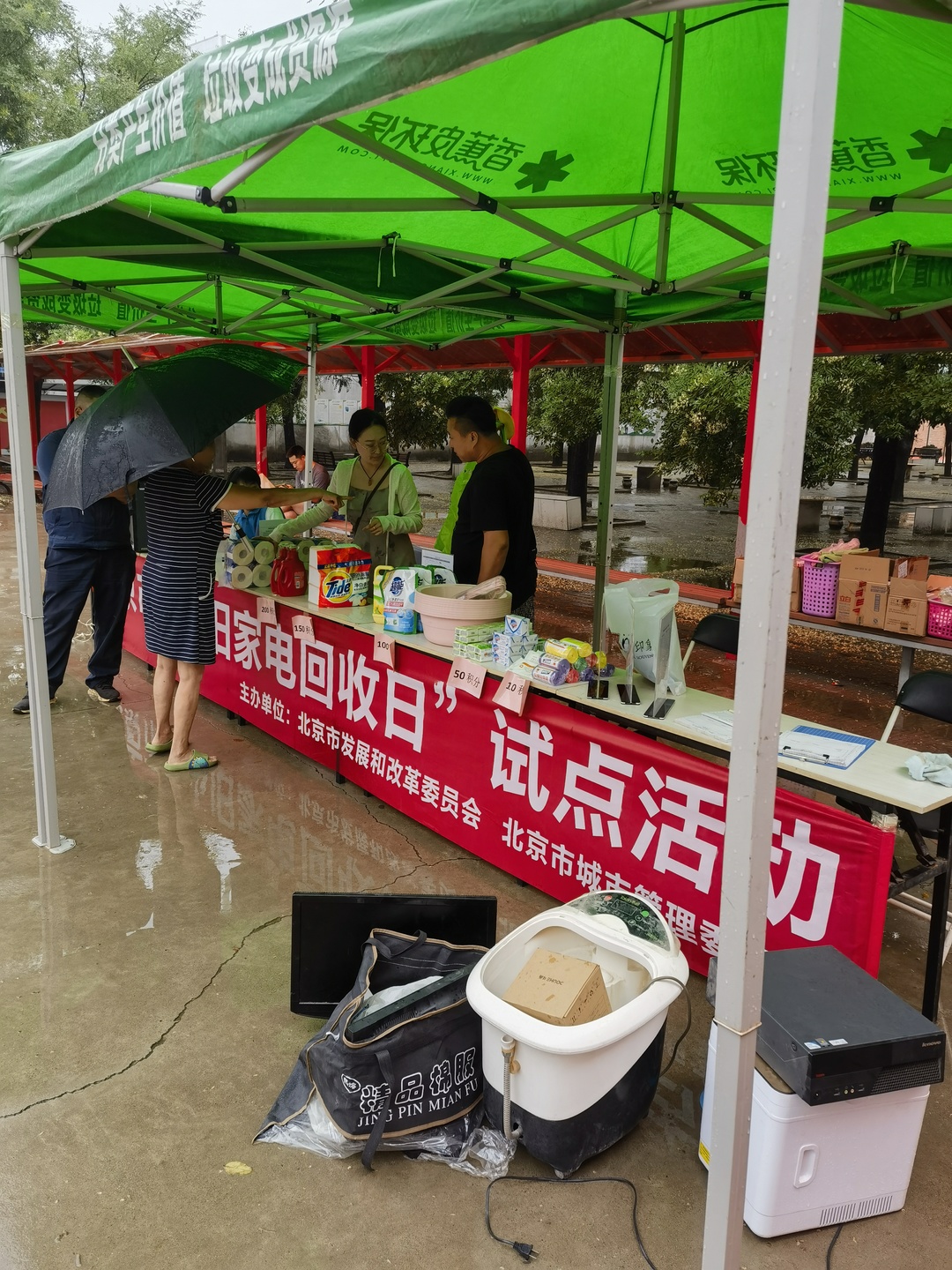 活動現(xiàn)場安置帳篷及懸掛橫幅,此次懸掛宣傳橫幅不僅體現(xiàn)廢棄電器電子產(chǎn)品新型回收利用體系試點建設(shè)試點,同時也向居民傳遞了公民的環(huán)保責任。